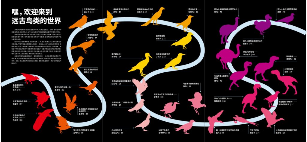 In October 2023, Extinct Birds 1 and Extinct Birds 2 from the PNSO Animal Museum series have been published in Chinese. The two volumes scientifically and artistically demonstrate fresh understandings of bird evolution over 150 million years. In terms of design, the two books still follow the PNSO Museum format, using 1-meter-long colorful fold-out pages to present abundant details.