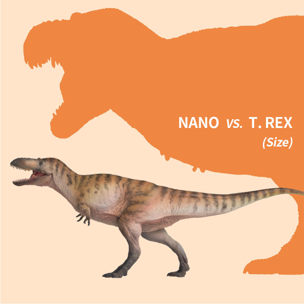 According to scientific research on the fossils, the body length of Logan the Nanotyrannus was set at 5 meters to scale down when we did the reconstruction.